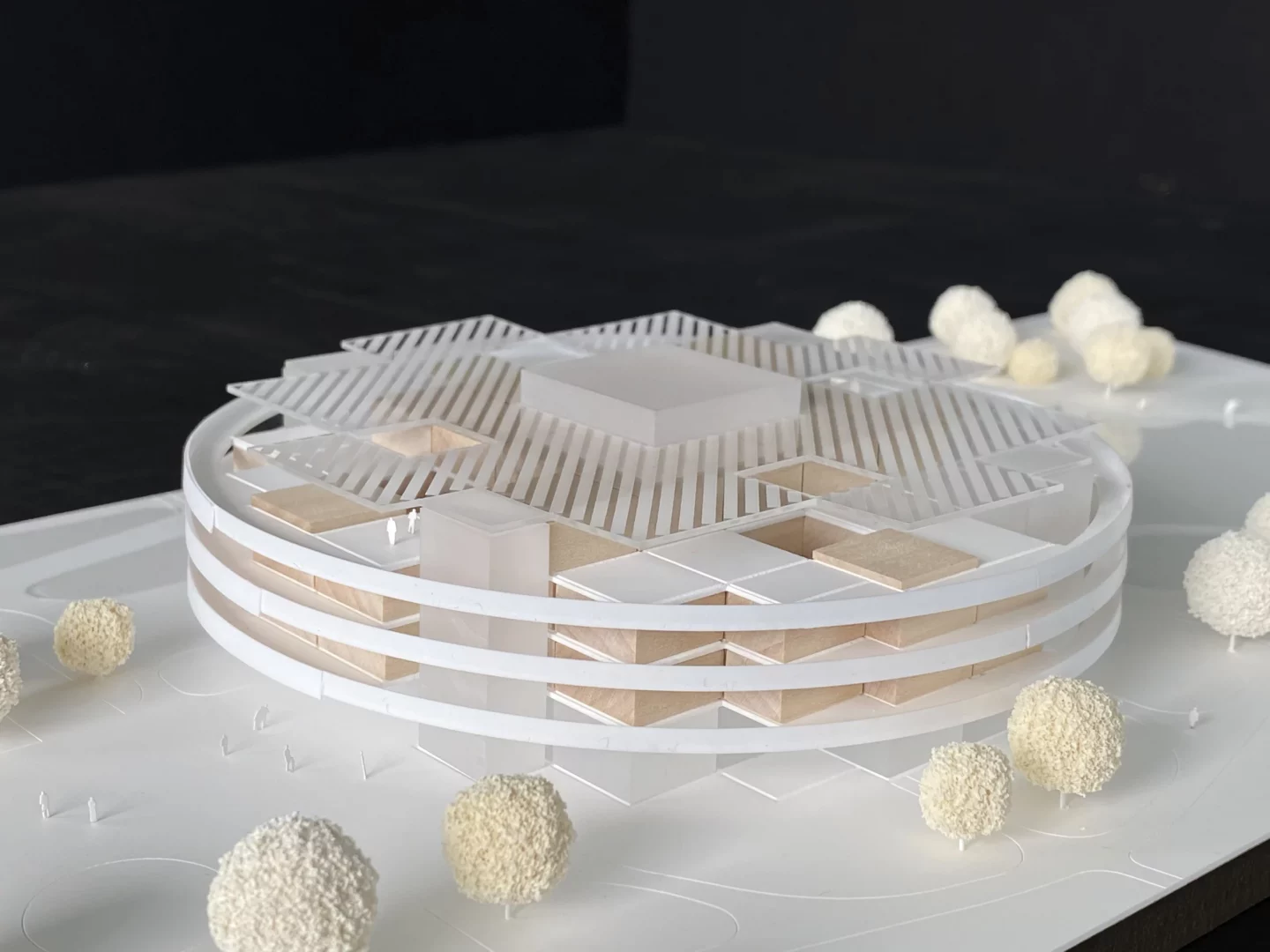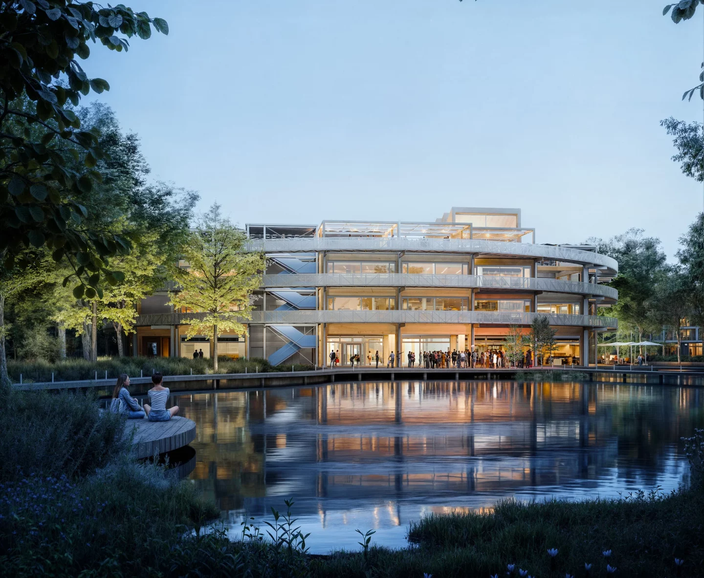 Der Brainergy Hub bildet das Herzstück eines neuen Wissenschaftsparks, der sich der Forschung an nachhaltigen und erneuerbaren Energien widmet. Als energetisch hocheffizientes Gebäude erzeugt es mehr Energie, als es verbraucht, und dient somit nicht nur als Arbeits- und Innovationsort, sondern auch als Energiequelle für den gesamten Brainergy Park. Seine Kreisform steht hier für eine gelichwertige Zugänglichkeit von allen Seiten. Innerhalb der ringförmigen Balkone ordnet sich das Raumprogramm pixelförmig und modular um ein zentrales Atrium und vier Innenhöfe.