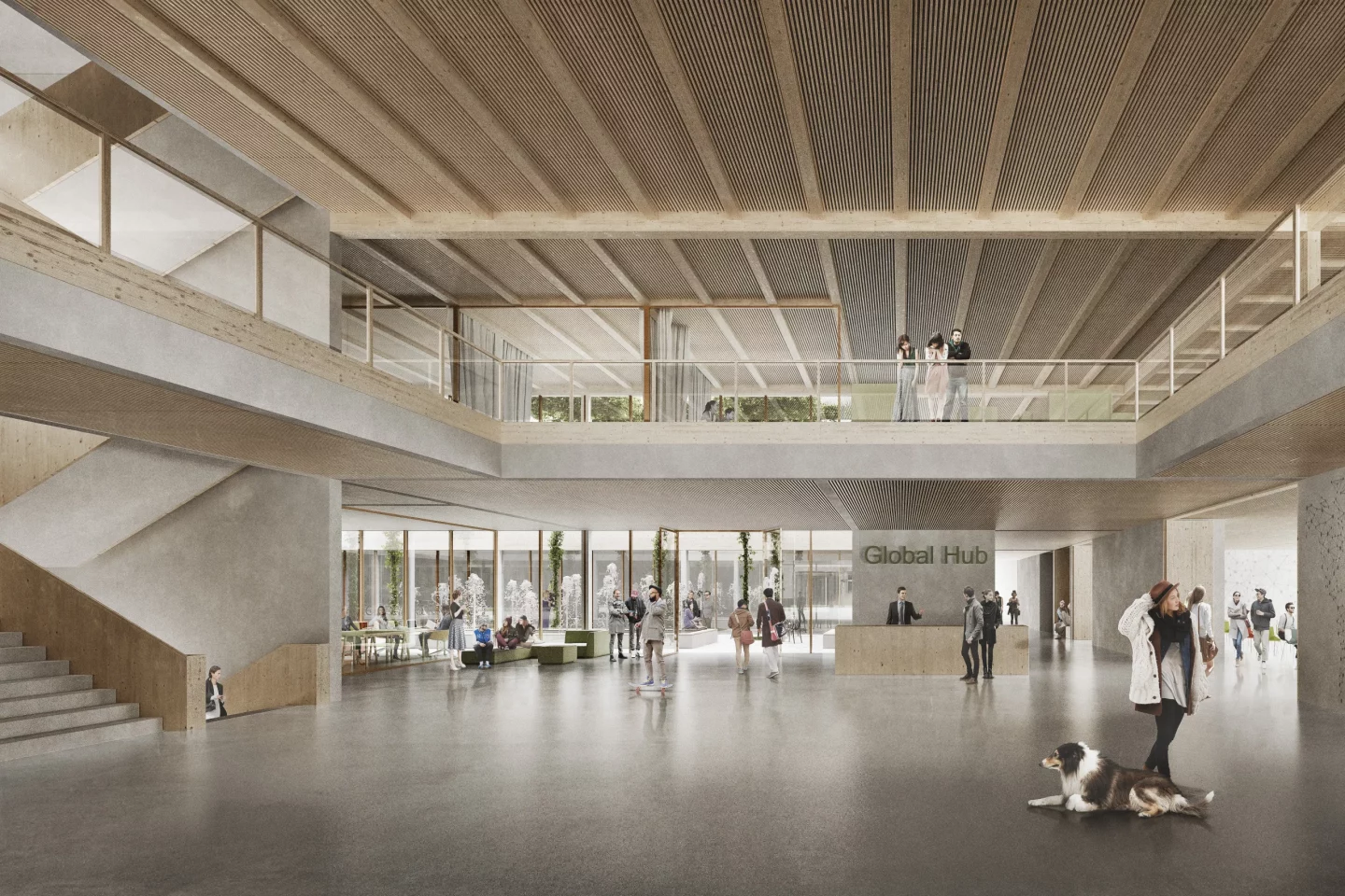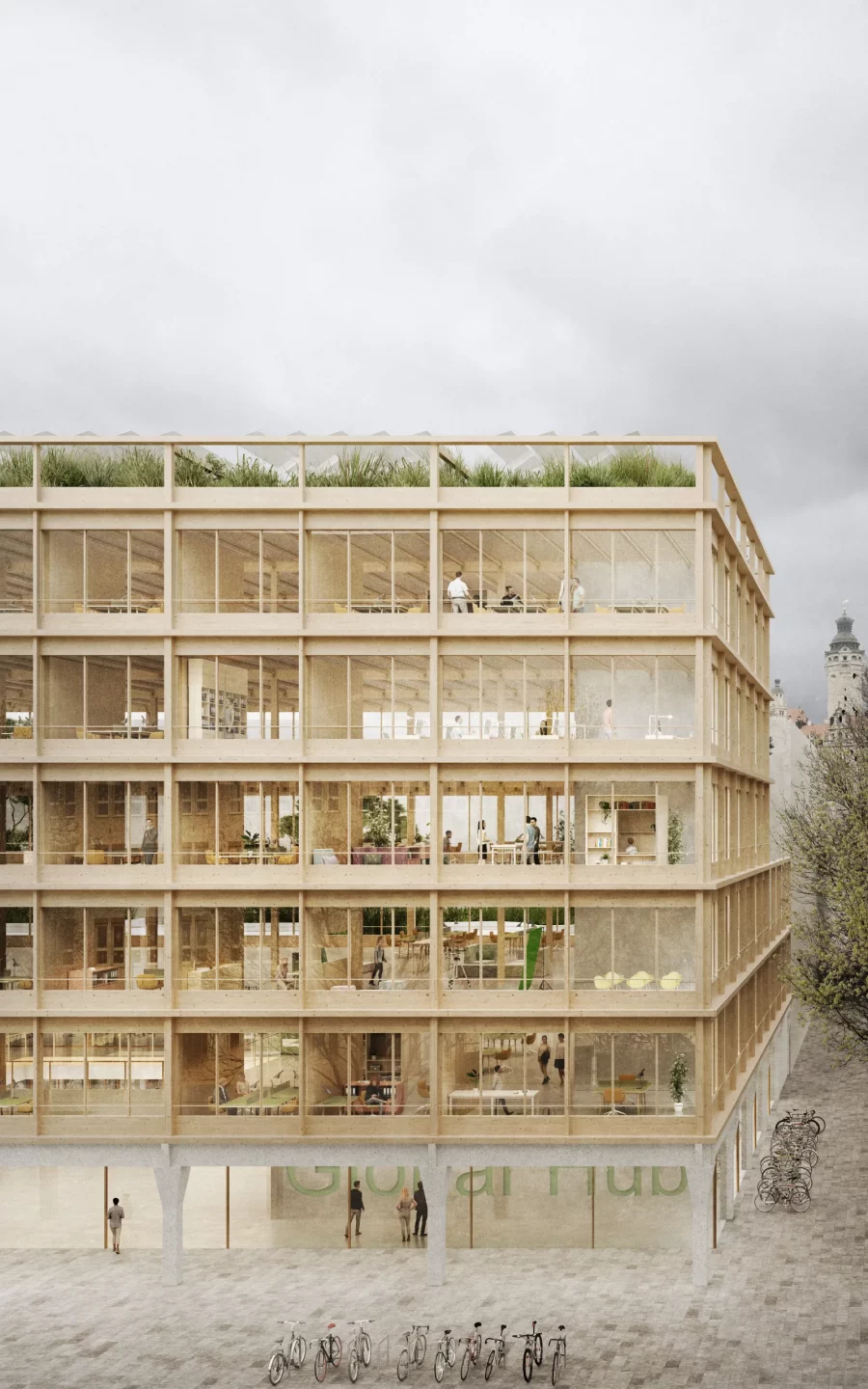 Der Global Hub ist ein neues Forschungsgebäude in zentraler Lage Leipzigs. Es bietet Arbeitsraum für knapp 500 Geistes- und Sozialwissenschaftler:innen der Universität Leipzig und ihre international anerkannte Spitzenforschung zu Globalisierungsprozessen.