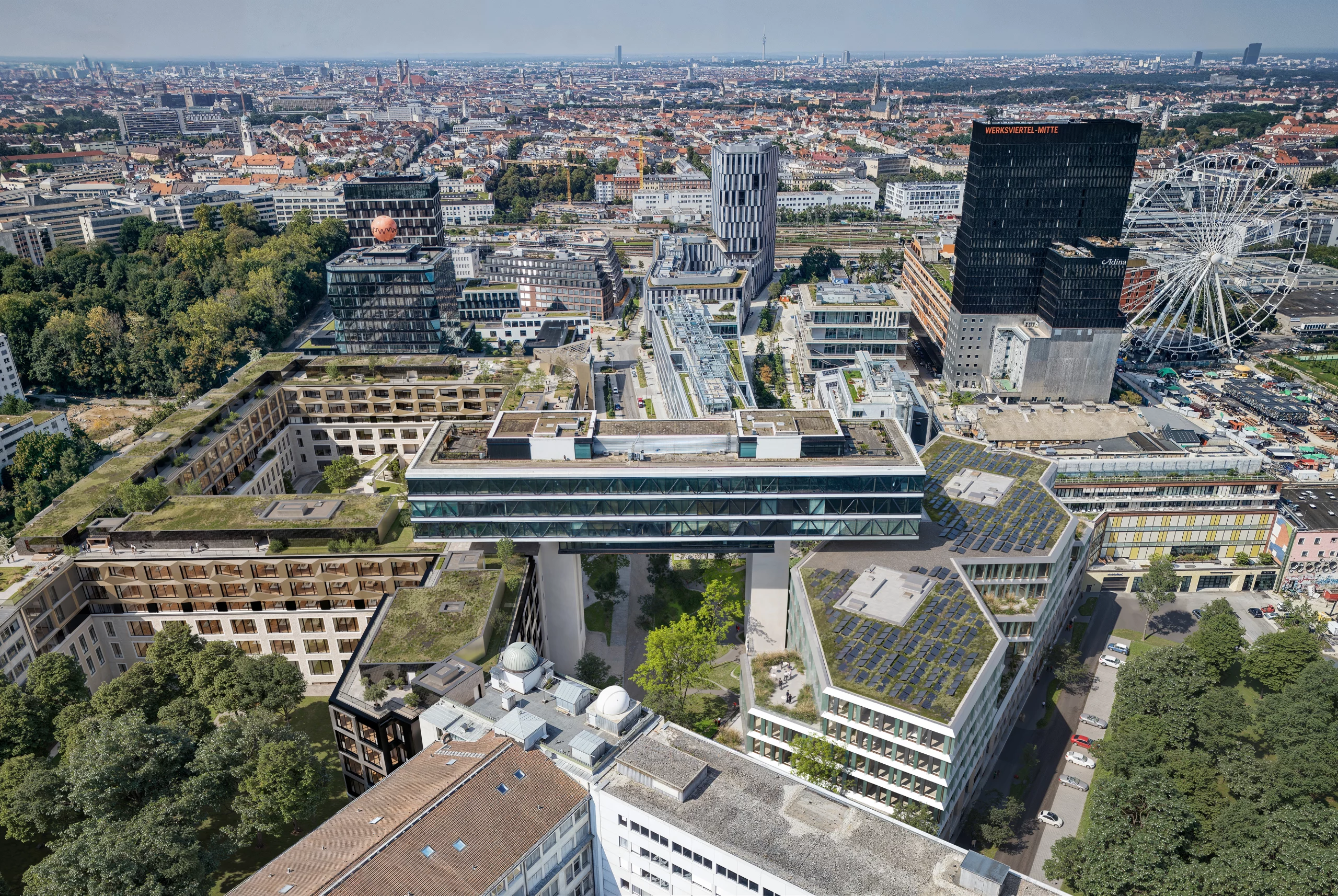 Das Gebäudeensemble „Mediaworks Munich“ wird bis 2029 umfassend revitalisiert. Das LOVT Vibe entsteht dabei als neuer multifunktionaler Workspace im Herzen des Münchner Werksviertels – direkt neben und teilweise unter dem bestehenden brückenartigen Bürogebäude „Medienbrücke“. Die Ausrichtung der oberen Geschosse nimmt Bezug auf das Bestandsgebäude. Begrünte Terrassen sorgen für maximales Tageslicht und Aufenthaltsqualität – und verleihen dem Gebäude seine charakteristische Identität.