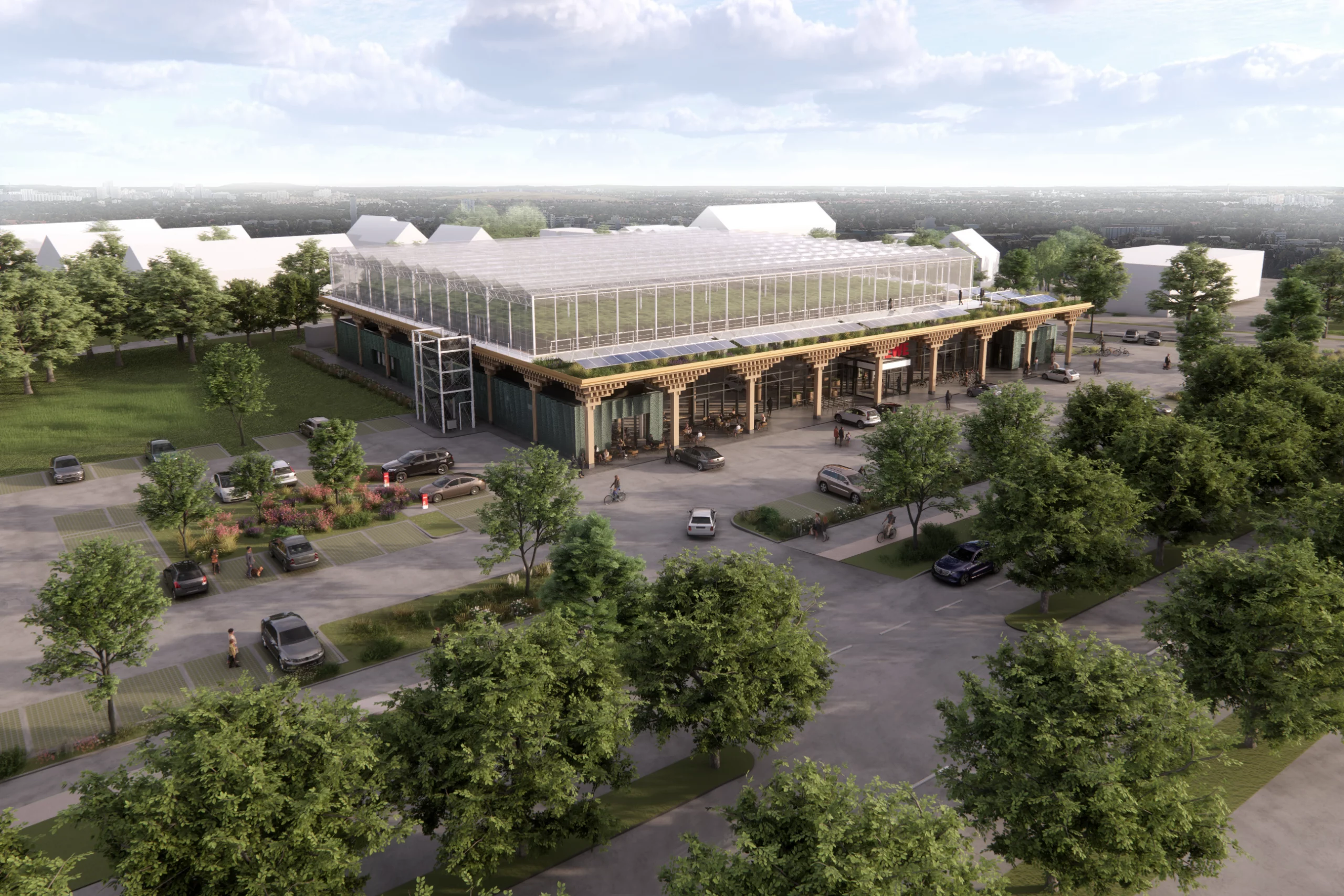 Mit dem REWE Green Farming Markt in Berlin Lankwitz entsteht die zweite Generation der bundesweiten Einführung einer neuen Identität von REWE Supermärkten. Das zweigeschossige Supermarktgebäude kombiniert Verkauf, Produktion und Kommunikation unter einem Dach und stellt die nachhaltige und transparente Lebensmittelproduktion mit dem Anbau von Salat in der Dachfarm exemplarisch in den Mittelpunkt und wird damit zum Vorreiter zukunftsweisender Supermarktkonzepte.